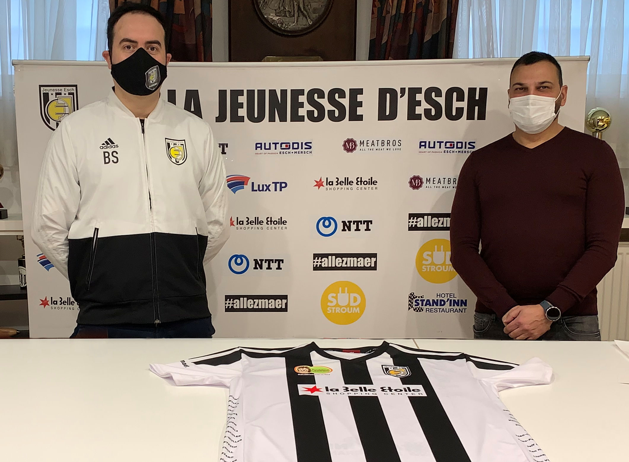 Lors d'une réunion tenue au Stade de la Frontière, Madame Caroline Theves, Responsable des Relations Partenaires et Donateurs chez Caritas, Monsieur Yacine Deghrir de Caritas Esch-sur-Alzette, Monsieur Sofiane Belaid, Directeur de l'Academy et Monsieur Panos Katsaitis, PDG et vice-président de l'A.S. La Jeunesse d'Esch, ont discuté et finalisé les différents détails de la coopération établie.